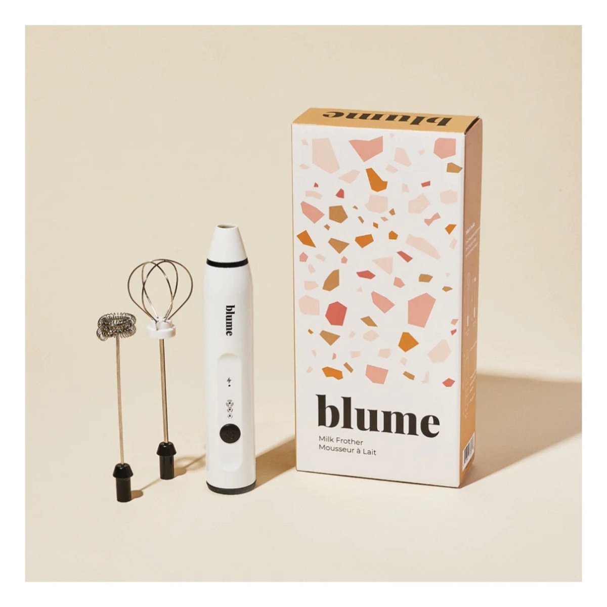 This frother includes a USB charging cable and two detachable whisk heads for dreamy, cloud-like micro-foam on the go. Works with any type of milk, hot or cold.