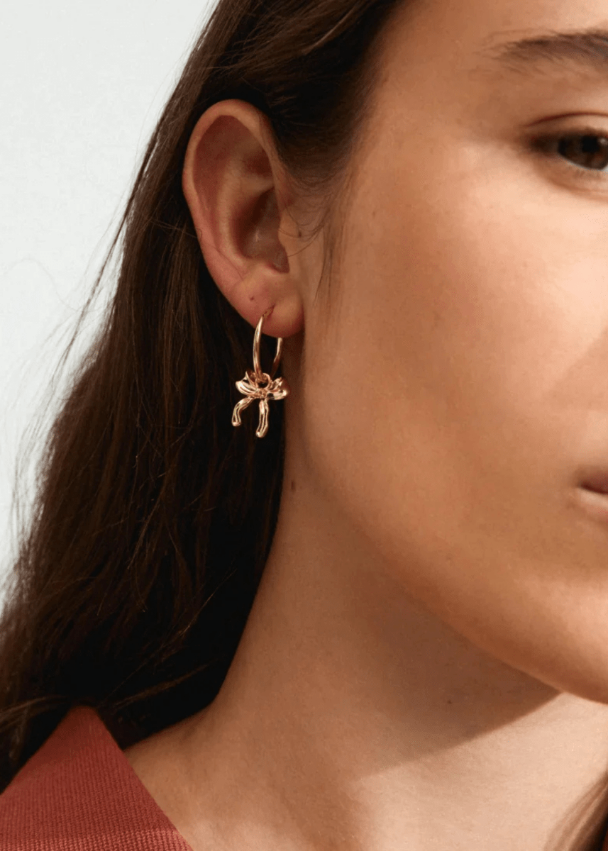 These bow earrings, available in gold or silver plating, add a touch of freshness and elegance to any outfit, from casual everyday looks to light, flowing summer dresses. Their original and trendy design makes these hoops the perfect accessory to complement your summer style with playfulness. Easy to wear, they feature a click clasp that ensures a secure and comfortable fit, ideal for a light and effortless look all day long. But that's not all!