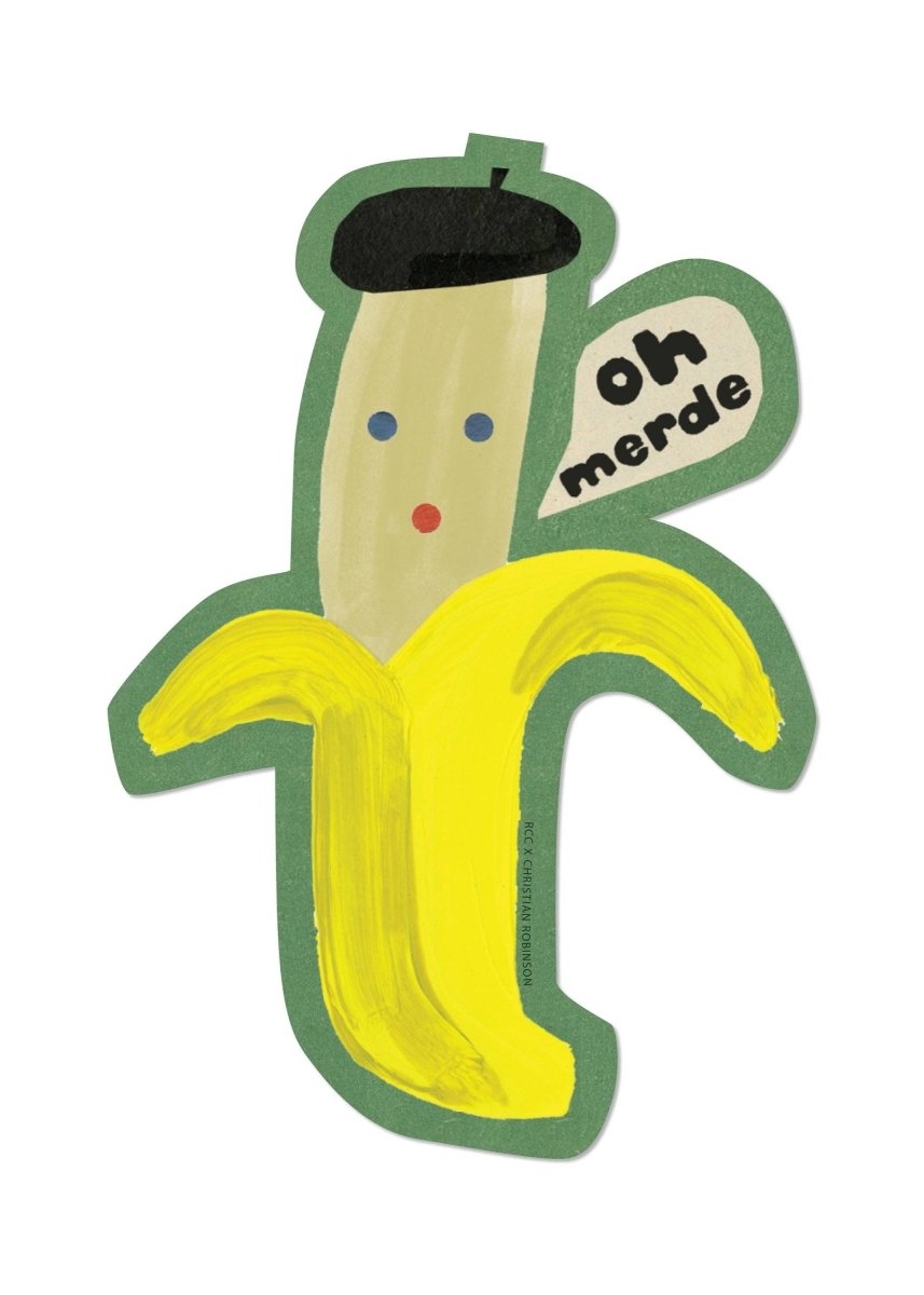 Découvrez cet autocollant conçu par Christian Robinson, mesurant environ 6,25 cm sur 9,05 cm. Fabriqué en vinyle blanc mat, il représente une banane coiffée d’un béret avec l’expression Oh Merde, pour ajouter une touche d’humour et de couleur à vos objets préférés.