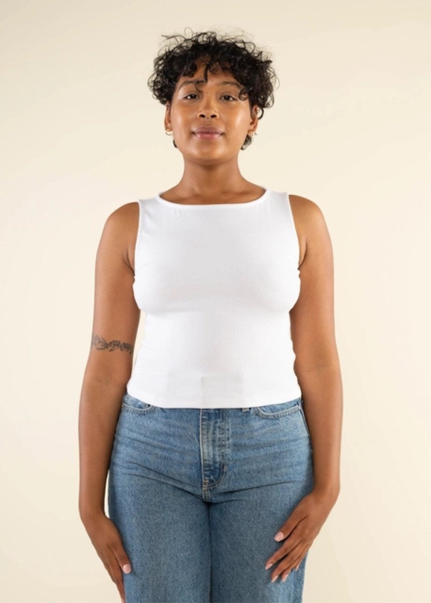 La camisole Valencia NLT Blanc est un débardeur mi-longue qui allie douceur et style avec son col bateau charmant.
