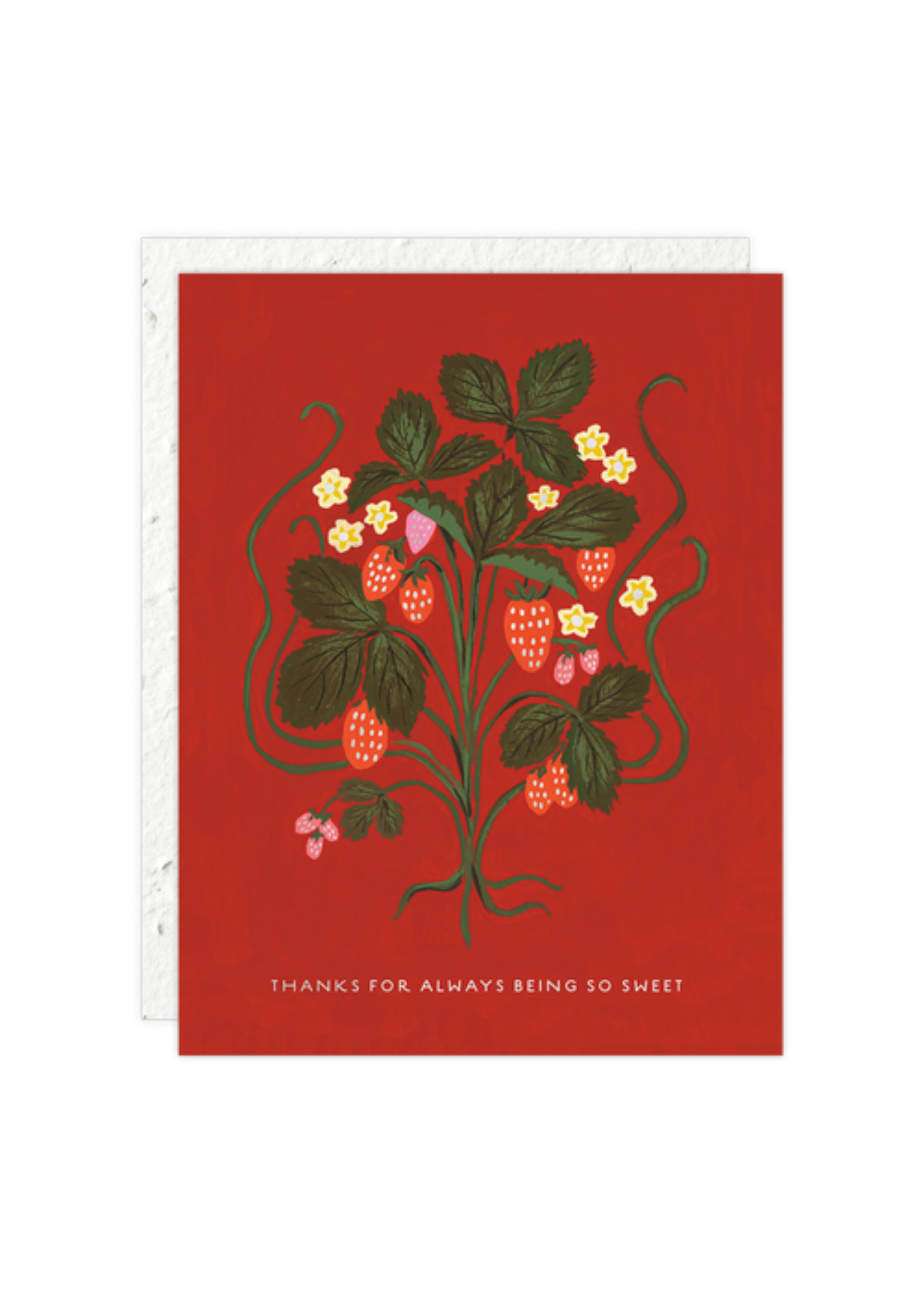 Cette carte mesure environ 4,25" x 5,5" et est accompagnée d’une enveloppe de 4,3125" x 5,75" au format A2, parfaite pour toutes les occasions spéciales. Fabriquées avec soin aux États-Unis, les cartes Seedlings comme Sweet Strawberry mêlent parfaitement écologie, qualité et design élégant.