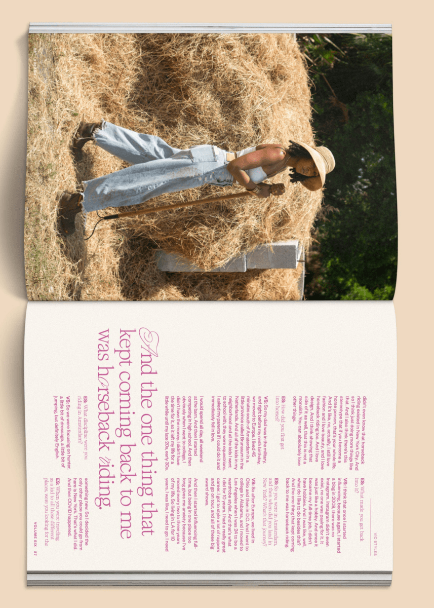 Calling All Horse Girls Vol. 5 entre dans un espace REM pour explorer les rêves des filles de chevaux, des chevaux mythologiques emblématiques qui galopent dans nos fantasmes aux tatouages de chevaux en passant par la vie rêvée d'une cavalière olympique de saut d'obstacles. Cynthia Hernandez partage ses cinq règles pour rejoindre le Pony Club à l'âge de 43 ans, Lola Dupre utilise du papier pour faire apparaître des chevaux fantastiques, et Kate Nelson rêve de passer une journée à la ferme avec Martha Stewart.