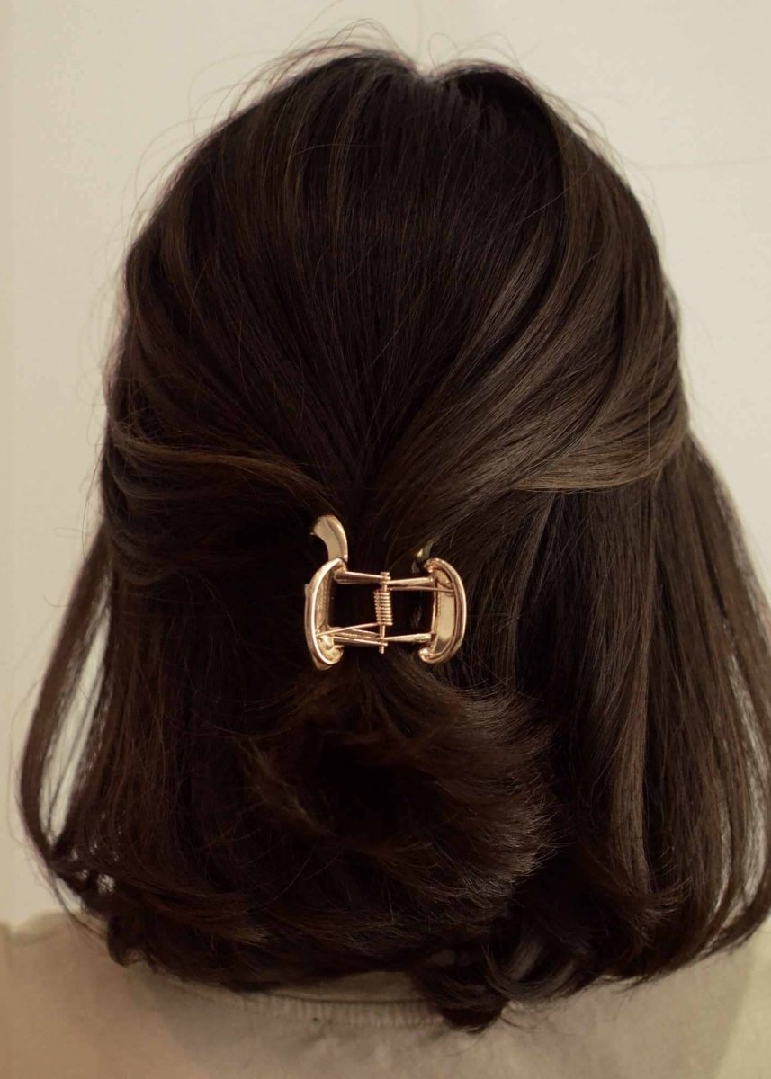 Cette pince à cheveux présente une longue forme organique avec du métal pour un look naturel et minimal. Elle s'accroche solidement aux cheveux grâce à son mécanisme à ressort et à ses dents robustes pour éviter d'abîmer les cheveux.