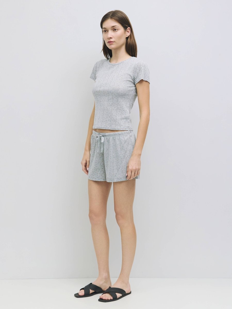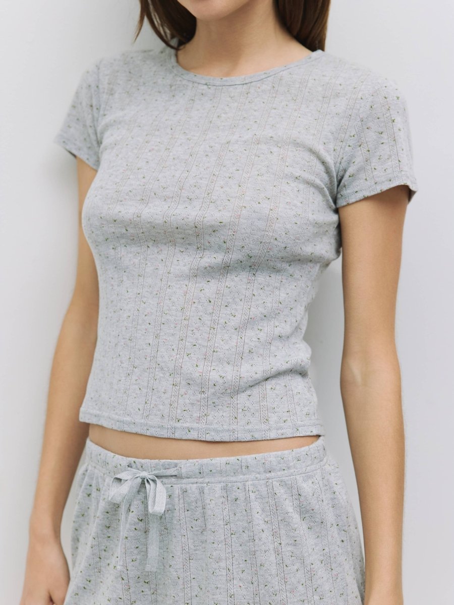 Le T-shirt Cherie est un baby tee fleuri fabriqué dans un tissu pointelle doux.